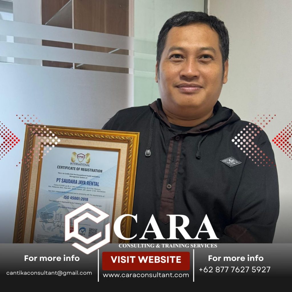 Training Awareness P2K3 at PT Indonesia TRC Industry Training Basic Safety at SMK Negeri 4 Jakarta Training Basic Safety at SMK Negeri 49 Jakarta Training Logistic Management System at SMK Negeri 10 Jakarta Assessment Safety Implementation based on ISO 45001:2018 at PT Eyecos Kosmetik Indonesia CARA Berqurban dan Berbagi kepada sesama Penyerahan Dokumen Surveillance Audit CV MITSUTAMA TECHNOLOGY Penyerahan Sertifikat ISO 9001:2015 kepada Manajemen PT Cemerlang Abadi Tekindo New Product Development “HEALTHCARE, SERVICE EXCELLENCE & MARKETING Kolaborasi CARA Consultant dan JDDC dalam acara Seminar Safety Riding dalam rangkaCSR AXA mandiri Training Integrated Management System dan Internal Audit at PT DJABESMEN Training Service Excellence at RS Antam Medika with Vina Listy Academy by CARA Consultant Training Service Excellence at RS Husada with Vina Listy Academy by CARA Consultant Penandatanganan Kontrak Kerjasama dengan VINA LISTY ACADEMY Serah terima Sertifikat ISO 9001:2015 kepada manajemen PT Baja Utama Teknologi Training Internal Audit ISO 19011:2018 @PT Murotech Indonesia Kegiatan Sosialisasi Mengenal Dunia Industri melalui PKL (Praktik Kerja Lapangan)di SMK Negeri 10 Jakarta Kegiatan Penilaian Safety Maturity Level di PT Pelayaran Kartikasamudra Adijaya Pengukuran Safety Maturity Level di PT Cotrans Asia, Tanah Grogot Kalimantan Timur Selamat Kami ucapkan kepada Manajemen PT Saudara Jaya Rental yang telah mendapatkan sertifikasi ISO 9001, ISO 14001 dan ISO 45001 In House Training Practical Problem Solving di PT Enkei Indonesia Training Internal Audit ISO 19011:2018, PT INDONESIA STANLEY ELECTRIC