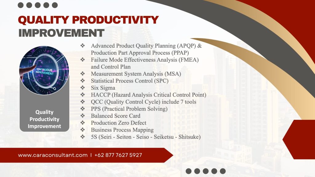 We offer comprehensive consulting and development services designed to enhance your business performance, including ISO Management Systems, Quality and Productivity Improvement, Organization & People Development, and Health, Safety & Environment (HSE) solutions—supporting efficient, competitive, and sustainable operations.